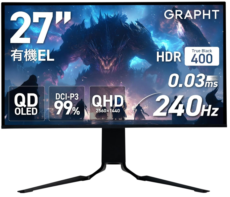 ä»åãç§ã宿©ã«è§ŠããŠã¬ãã¥ãŒããã®ã¯ãæ¥æ¬ã¡ãŒã«ãŒã§ããGRAPHTãåžå Žã«æå ¥ããææ¬²äœã**ãGRAPHT QD-OLED 27ã€ã³ã 240Hz (GR2724OEL-BK)ã**ã§ãã